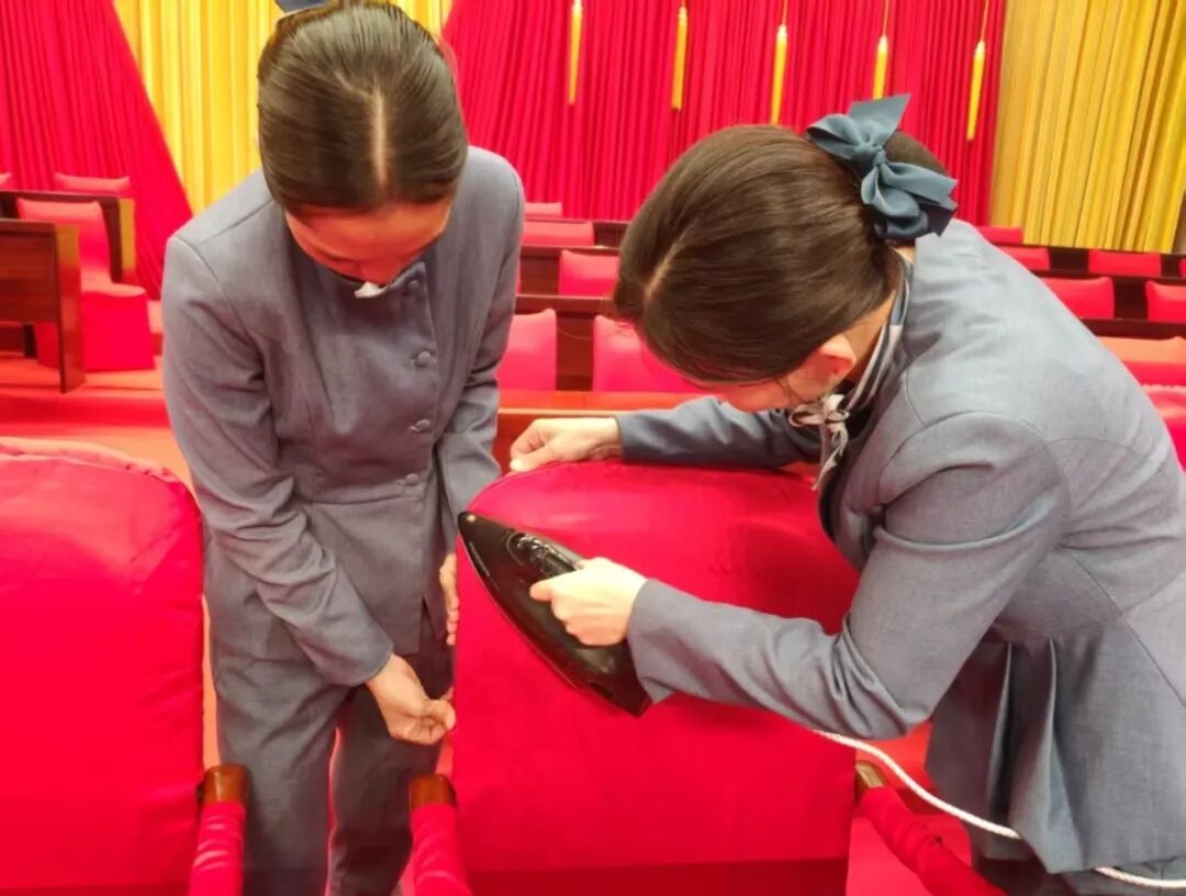 会前筹备阶段,保障团队以“精益求精、万无一失”为原则,开展全方位细致筹备工作。工作人员逐一对主会场及相关区域的座位排布进行核对校验,确保每位代表的姓名与位次精准匹配,从细节处夯实保障基础,为会议召开营造整洁、有序、规范的政务环境。