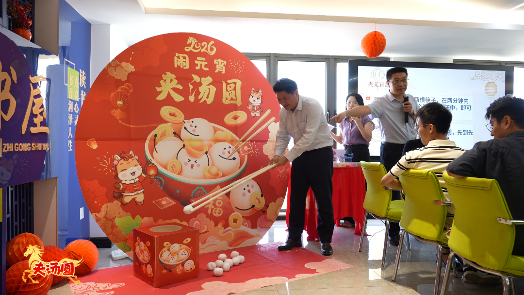 一旁的“夹汤圆”趣味挑战赛更是热闹非凡。参与者手持长筷,屏息凝神,争分夺秒地将圆滚滚的“汤圆”从一个碗夹到另一个碗中。有人稳扎稳打、一气呵成,有人手忙脚乱、笑料不断,现场气氛紧张又欢乐。经过激烈角逐,获胜的同事们收获了精美小礼品,喜悦之情溢于言表。大家在轻松愉快的比拼中拉近了距离,增进了默契。
